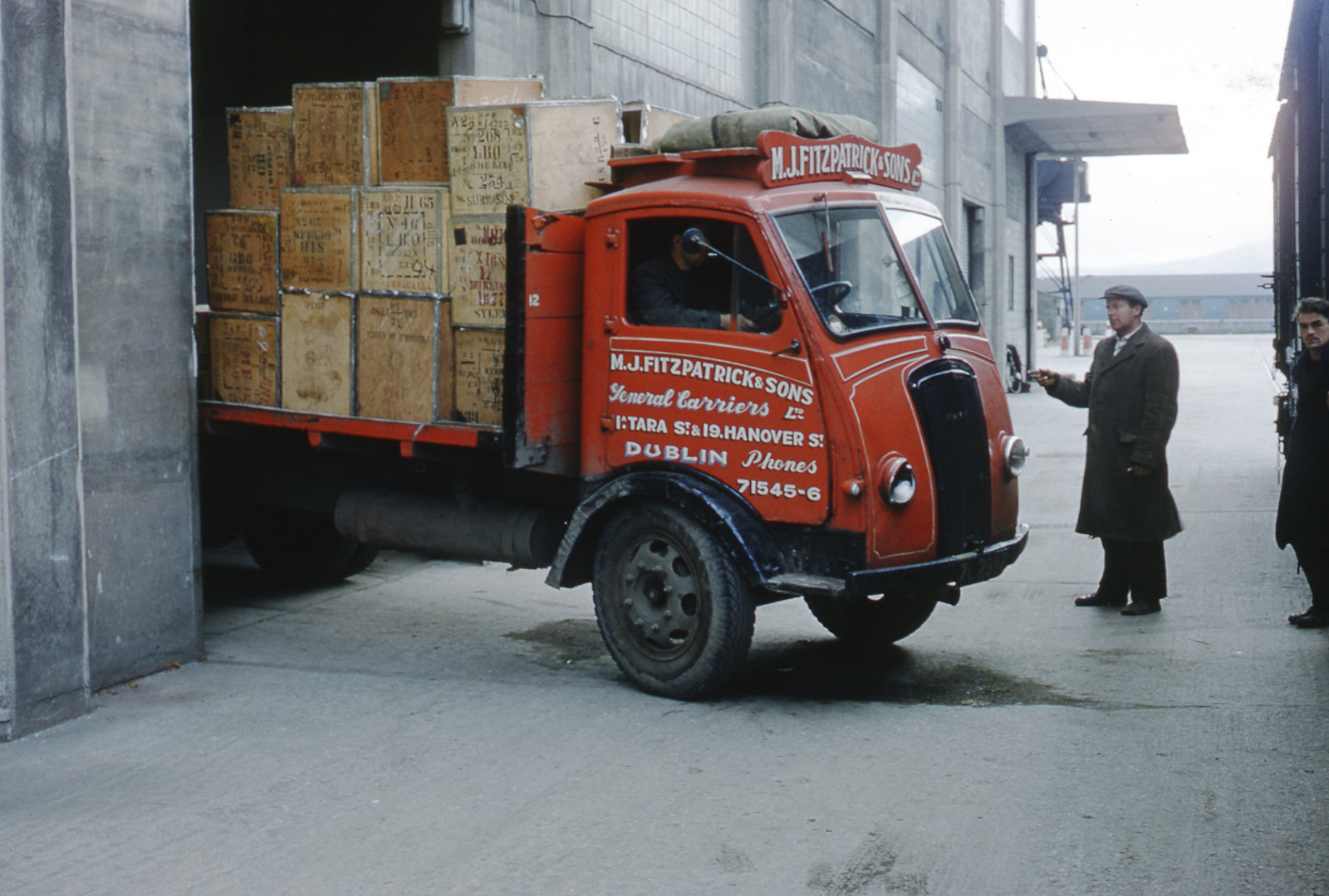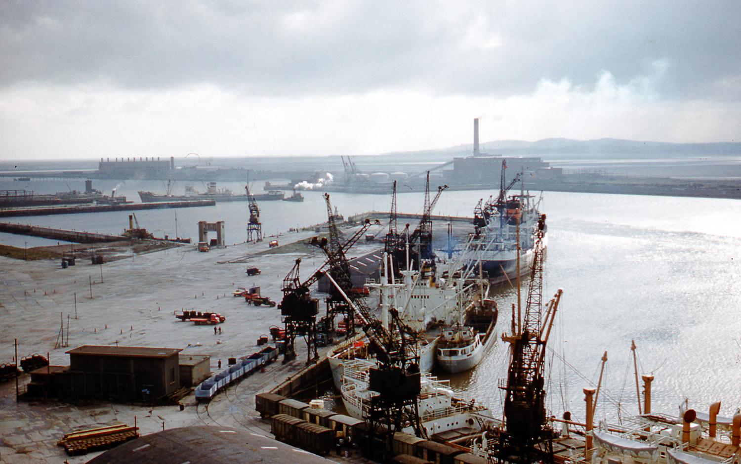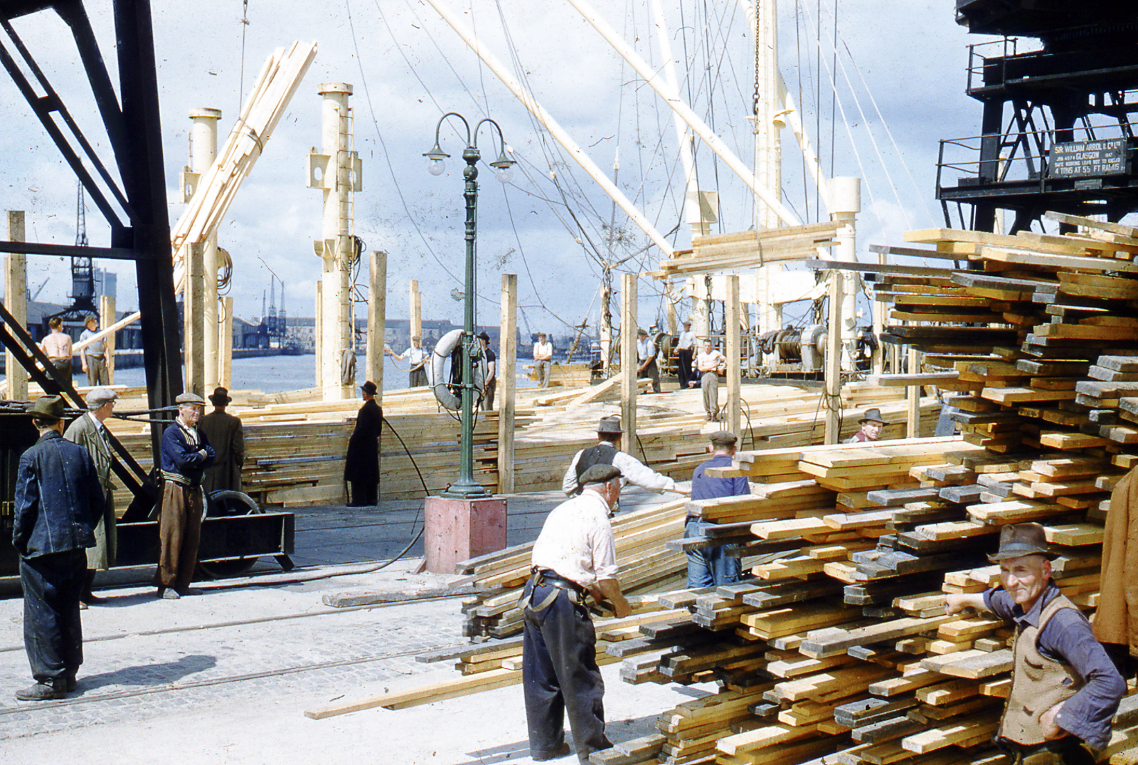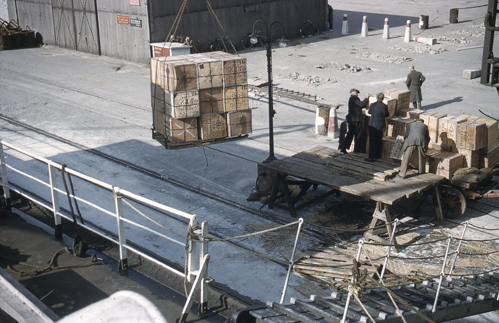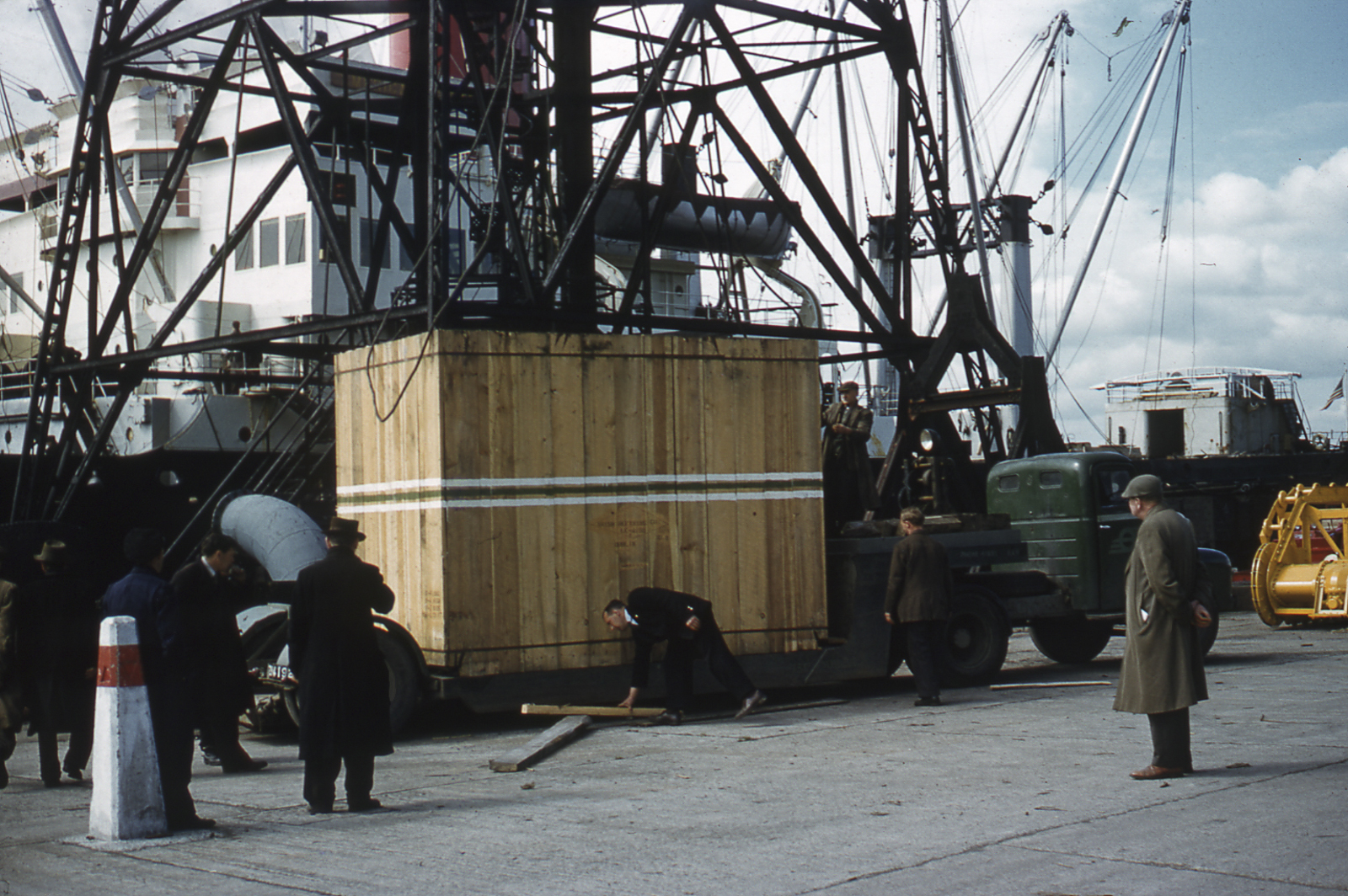 Dublin Port Archive preserves a collection of over 3,500 colour slides, dating between the 1950s and 1970s. The main topics depicted are port operations and shipping. They depict an era that is long gone, starting to disappear with the invention of the container by Malcolm McLean. The container meant the standardisation of shipping and changed the port environment forever. Dockers and their expertise in handling all types of cargo manually, filling or emptying a ship hold manually and in the most efficient way, were no longer needed. The Dublin docks, that ran down both sides of the river from the Custom House to Alexandra Basin, were no longer suitable for the massive container ships, and the port was confined to its current location.