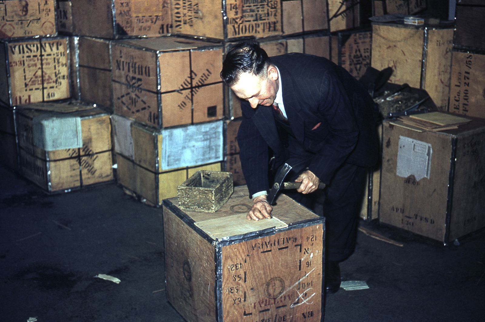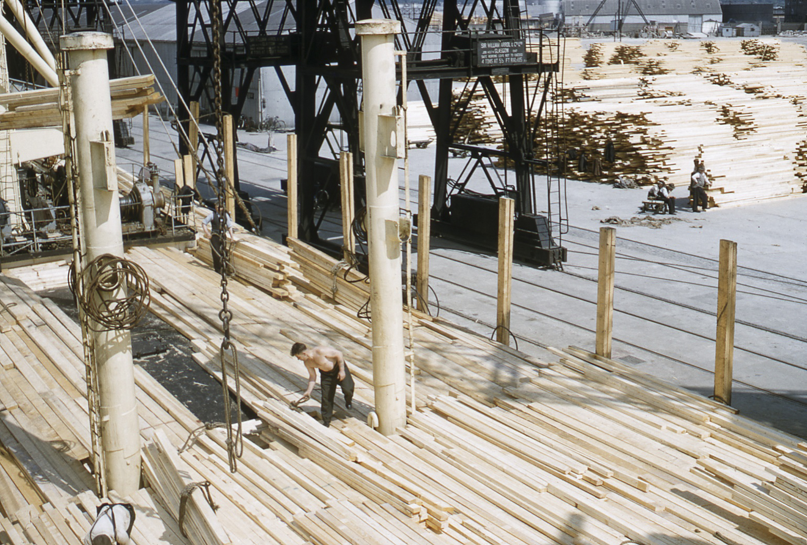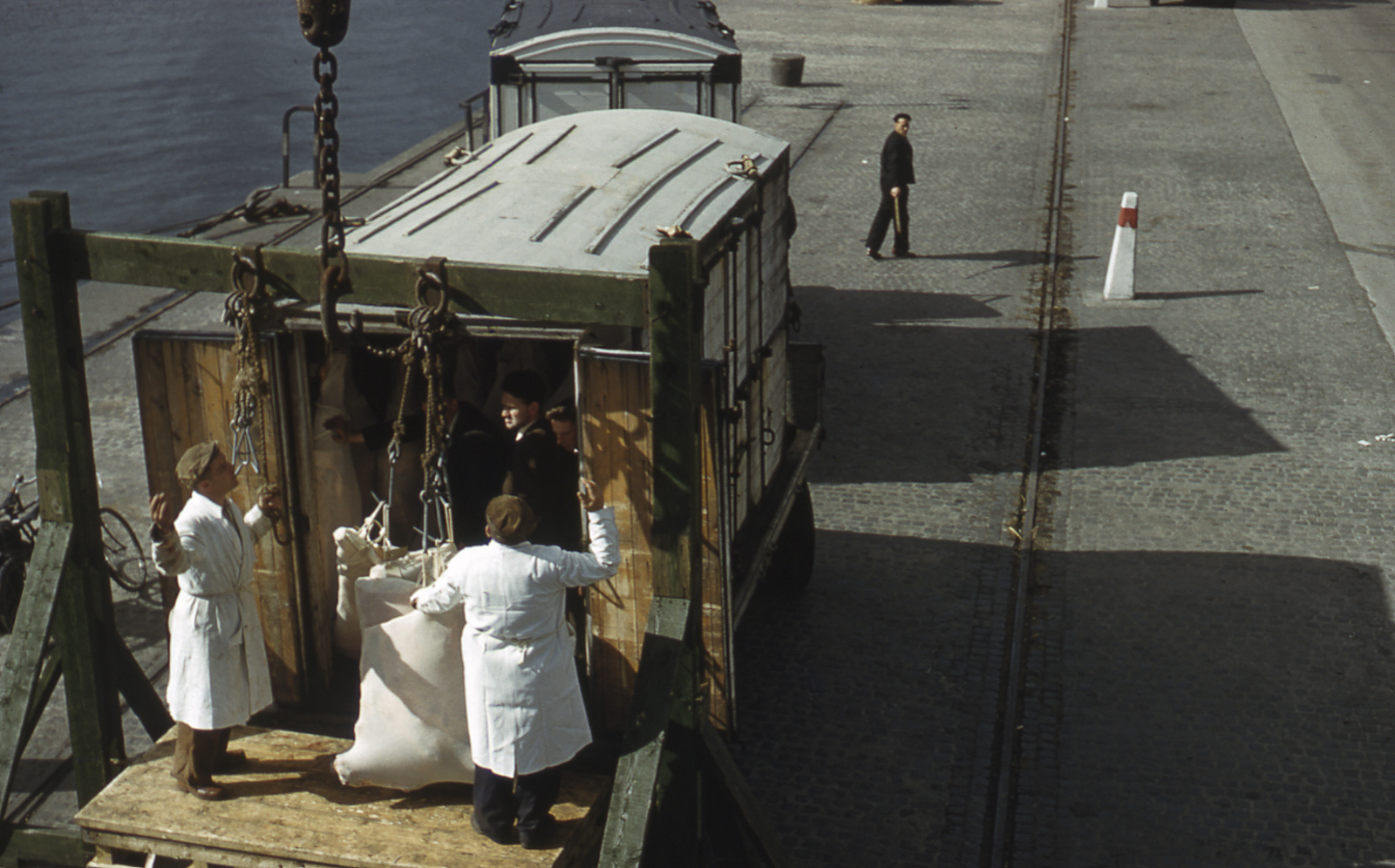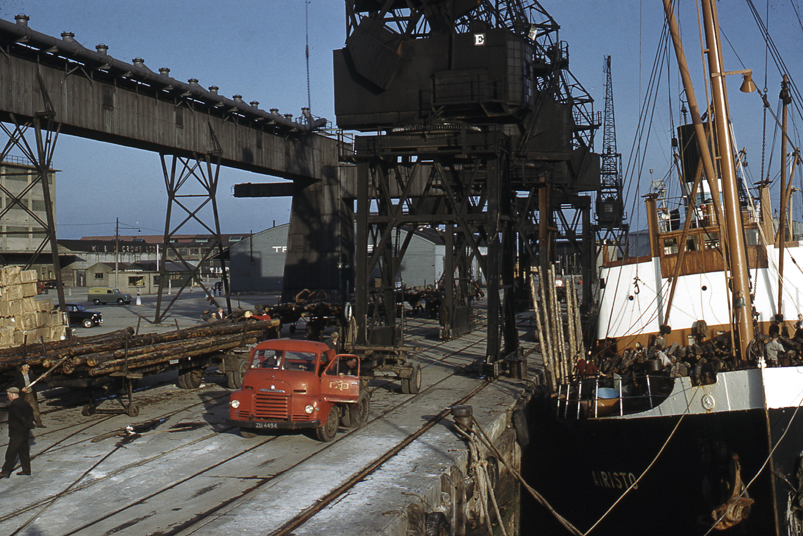 Dublin Port Archive preserves a collection of over 3,500 colour slides, dating between the 1950s and 1970s. The main topics depicted are port operations and shipping. They depict an era that is long gone, starting to disappear with the invention of the container by Malcolm McLean. The container meant the standardisation of shipping and changed the port environment forever. Dockers and their expertise in handling all types of cargo manually, filling or emptying a ship hold manually and in the most efficient way, were no longer needed. The Dublin docks, that ran down both sides of the river from the Custom House to Alexandra Basin, were no longer suitable for the massive container ships, and the port was confined to its current location.